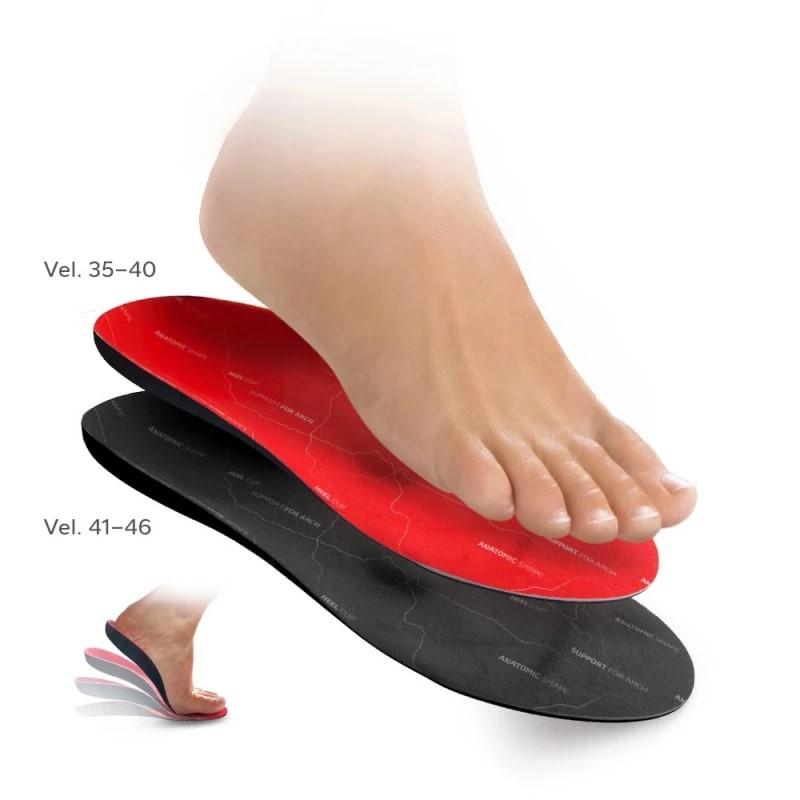 | Instrukce k použití | Nepoužívejte současně s jinou podporou podélné a příčné klenby. / Po použití doporučujeme vložky vyjmout z obuvi a nechat proschnout při pokojové teplotě. Nesmí se prát v pračce. / Používejte správnou velikost. / V případě, že se léčíte s diabetem, konzultujte použití výrobku s lékařem. / Vložky jsou dodávány ve dvojčíslích nebo trojčíslích, velikost lze ve špičce přizpůsobit zastřižením nůžkami. |