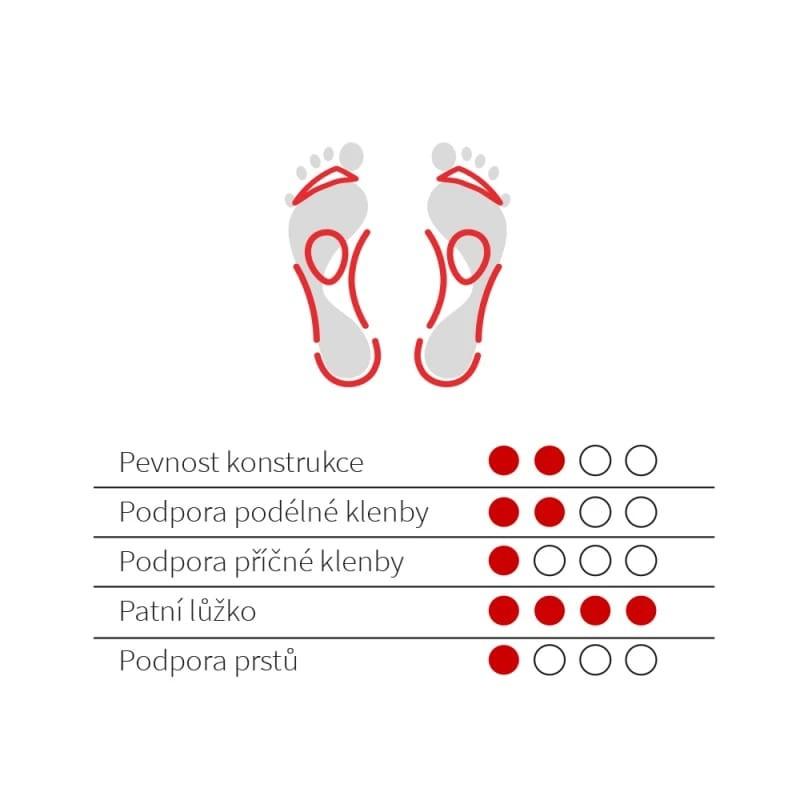 | Instrukce k použití | Nepoužívejte současně s jinou podporou podélné a příčné klenby. / Po použití doporučujeme vložky vyjmout z obuvi a nechat proschnout při pokojové teplotě. Nesmí se prát v pračce. / Používejte správnou velikost. / V případě, že se léčíte s diabetem, konzultujte použití výrobku s lékařem. / Vložky jsou dodávány ve dvojčíslích nebo trojčíslích, velikost lze ve špičce přizpůsobit zastřižením nůžkami. |