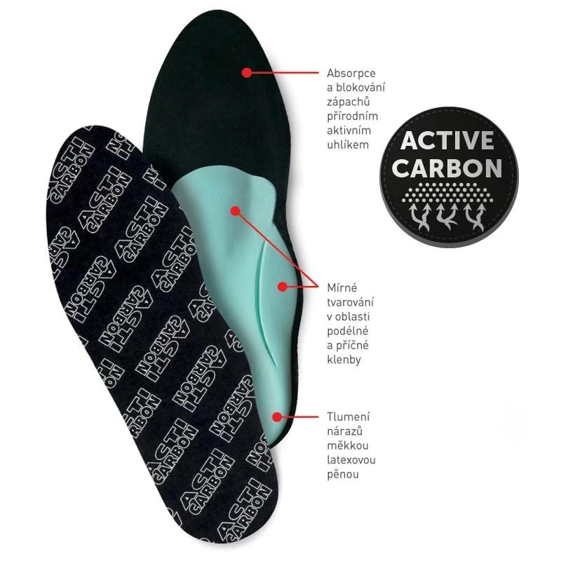 Vrchní latexová stélka s obsahem aktivního uhlíku vyniká vysokou savostí a omezuje šíření nežádoucích bakterií. Používají se v obuvi s nedostatečným vnitřním tvarováním a pro zvýšení komfortu chůze. Tvar lze upravit zastřižením nůžkami ve špičce.