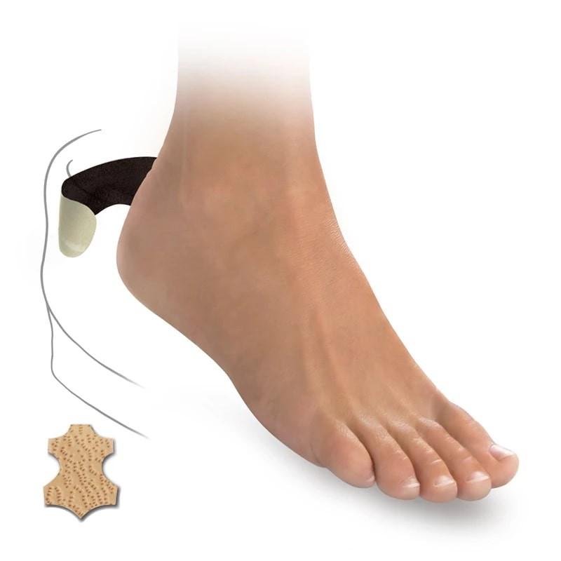 Přírodní hovězinová useň v černé barvě se zdrsněným povrchem, výplň ze šlehaného latexu a samolepicí fólie tvoří jednoduchou pomůcku se snadnou aplikací. Nejčastější využití je k zabránění vyzouvání obuvi, prevence vzniku otlaků v patě, vyrovnání nerovností v patní části obuvi. Tvar patičky koresponduje s tvarem patní části obuvi. Nákres v přibalovaném letáku znázorňuje ideální umístění patičky.