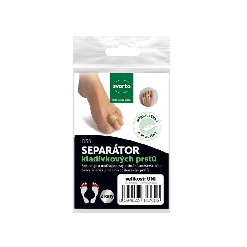 Roztahuje a odděluje prsty a chrání bolestivá místa. Zabraňuje vzájemnému poškozování prstů.