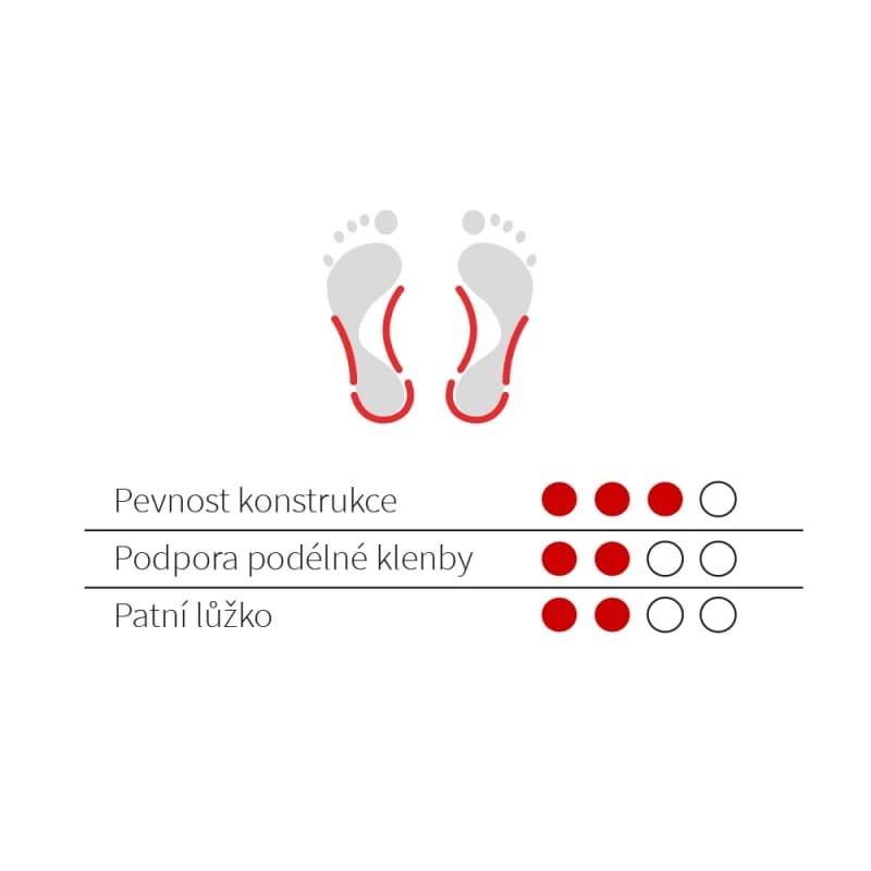 Ortopedicky tvarované vložky pro podporu podélné klenby.
