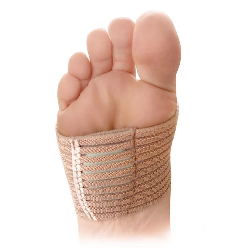 Bandáže stahují přední část nohy v místě prstních kloubů a podepírají příčnou klenbu latexovým srdíčkem.
