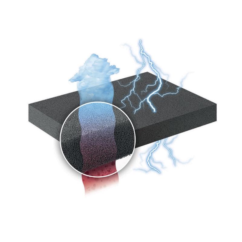 Stélky jsou zhotoveny z prodyšné polyuretanová pěny, vyrobené 100% z recyklovaných měkkých materiálů. Výsledkem je antibakteriální materiál, jehož hlavní složkou je aktivní uhlík. Tento revoluční materiál vyniká vysokou savostí a omezuje šíření nežádoucích bakterií, čímž výrazně pomáhá řešit potivost nohou.