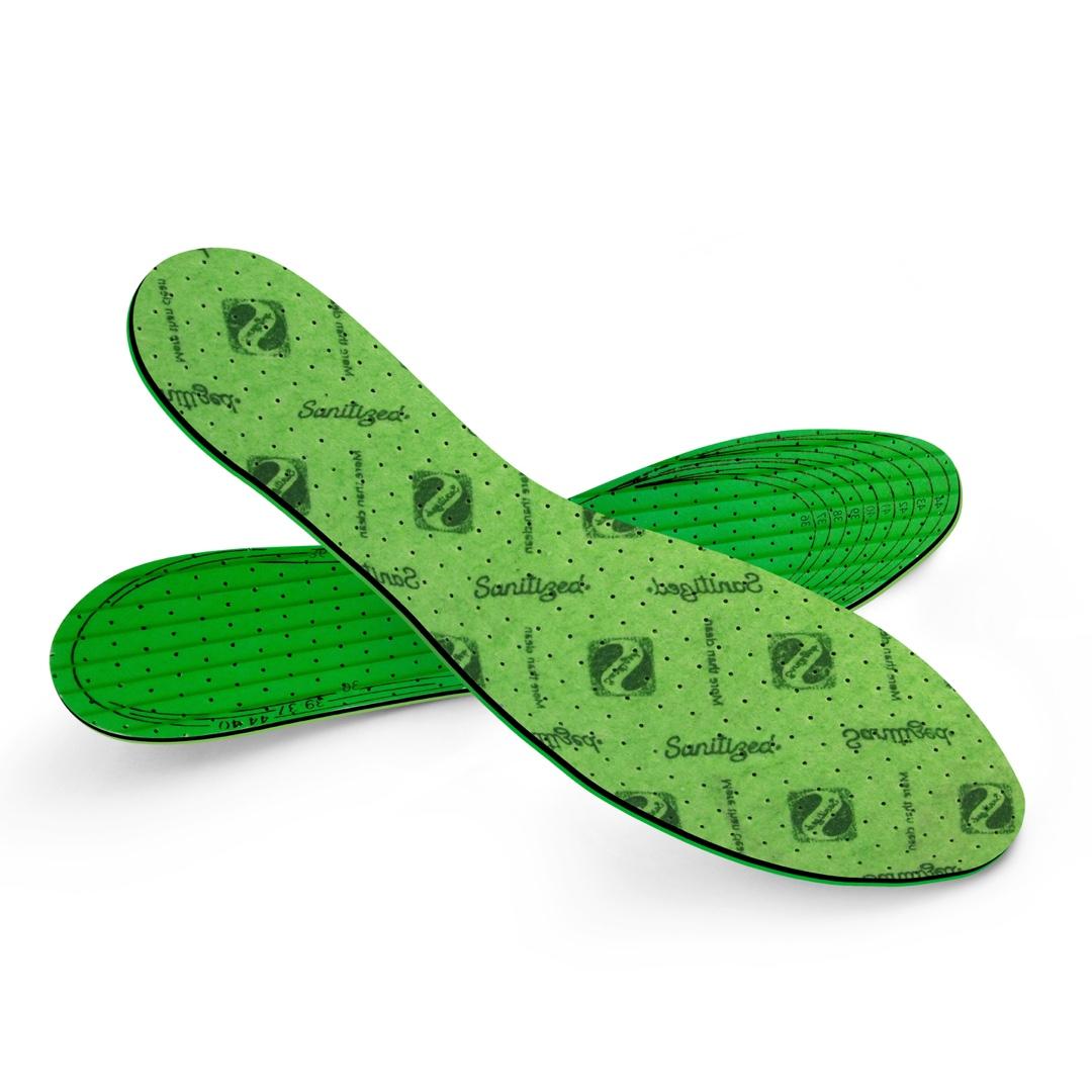 Vrchní vrstva stélky z absorpčního technického materiálu s antibakteriální a protiplísňovou úpravou SANITIZED®, pomáhá předcházet nepříjemným pachům, reguluje pocení a dodává nohám příjemný a svěží pocit. Druhá vrstva z prodyšné latexové pěny o vysoké hustotě absorbuje nárazy a pomáhá nohám dýchat. Protiskluzný povrch brání posouvání nohy uvnitř boty.