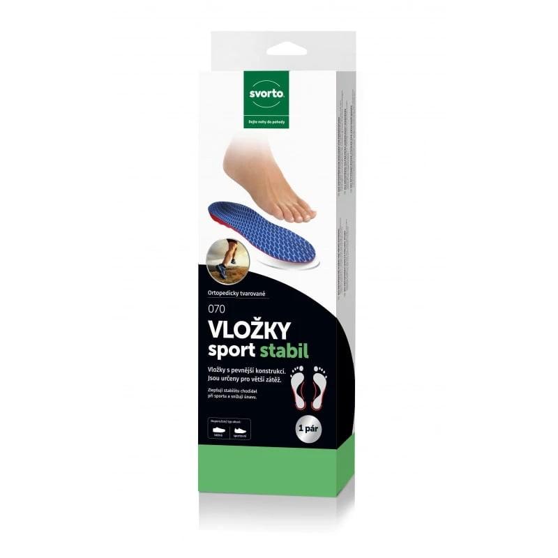 Vložky Sport jsou vyrobeny ze zátěžového materiálu EVA, který zaručuje zvýšenou trvanlivost i při intenzivním používání, a proto jsou vhodné i pro sportovní aktivity. Zvýšený okraj v patní části, vytvářející lůžko pro uložení paty, podporuje stabilitu nohy, vyklenutí pod podélnou klenbou brání jejímu zborcení při zvýšené zátěži.