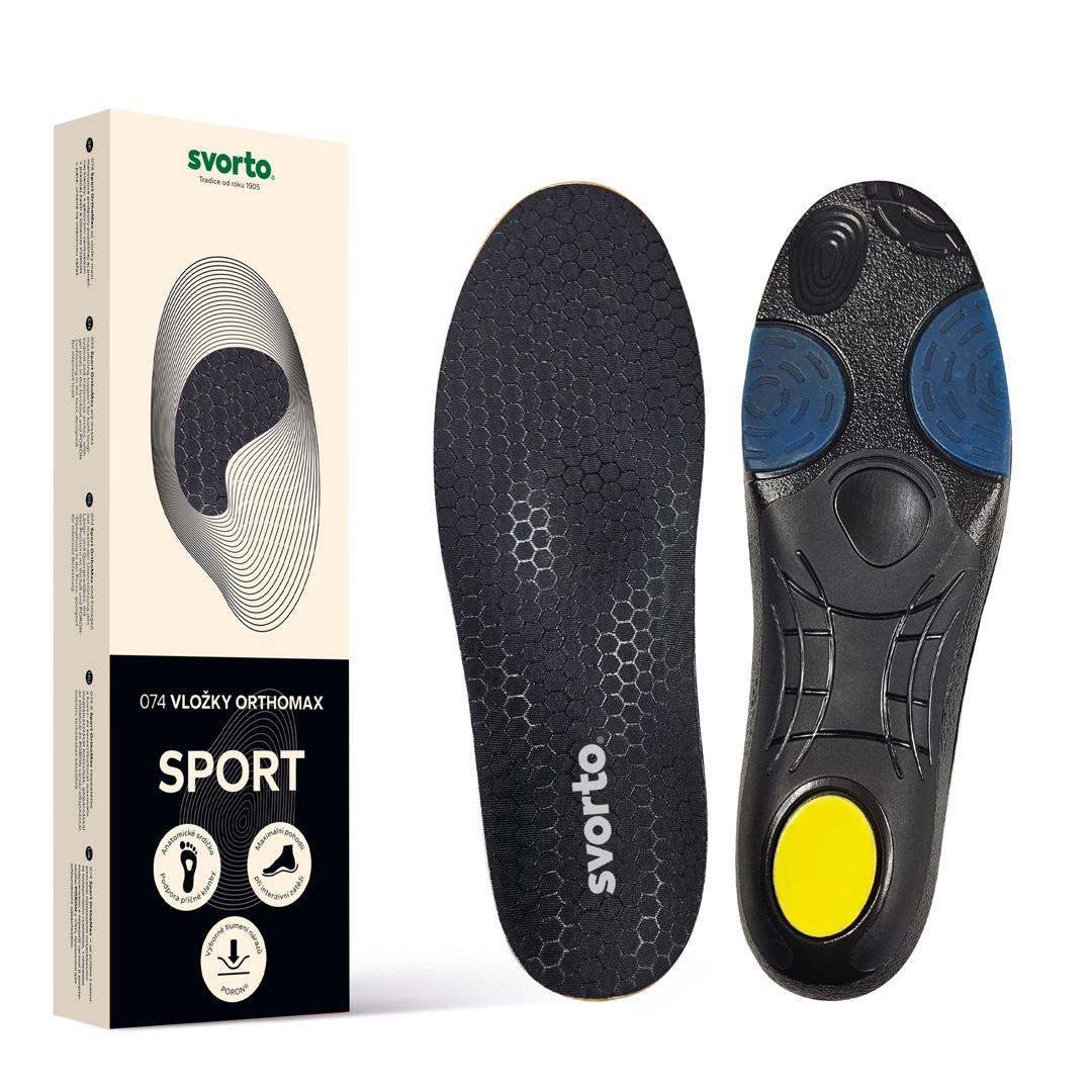 Sport OrthoMax – vložky s podporou podélné i příčné klenby, gelovými polštářky a PORON® tlumením pro intenzivní zátěž.