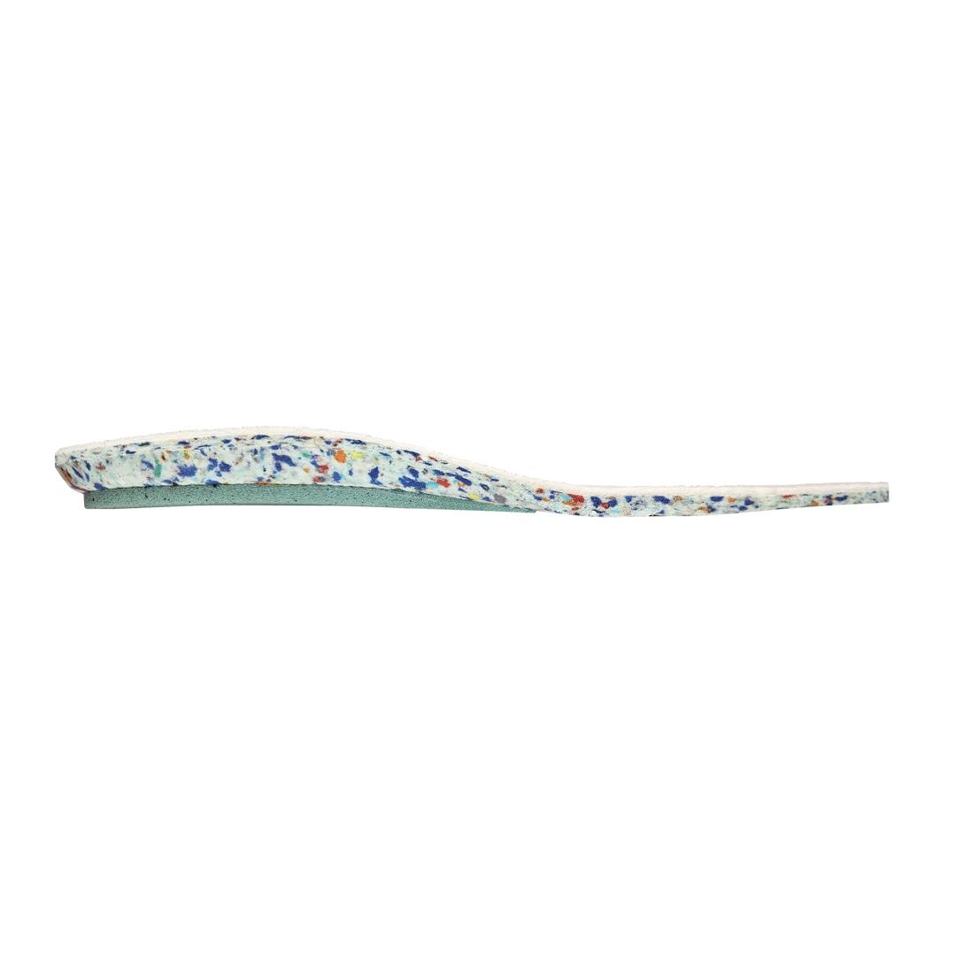 Vrchní vrstva s příměsí vlny pro vynikající tepelnou izolaci. Vrstva z recyklované PU pěny přináší výjimečné tlumicí vlastnosti, které snižují zátěž na chodidla a zvyšují celkový komfort.