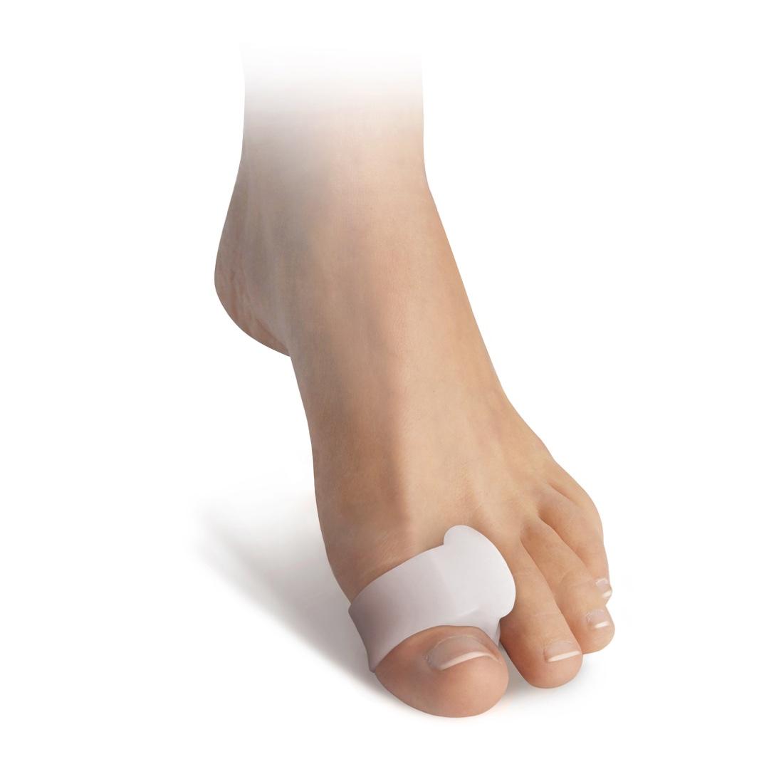 Měkký korektor je fixován ve správné poloze díky pružnému kroužku. Zabraňuje tření a odřeninám. Lze navléct buď na palec nebo na druhý prst.