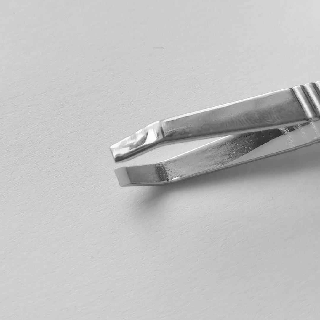 Pinzeta s rovnou čelistí. Je určena k preciznímu vytrhávání chloupků, obočí nebo k vyjmutí třísky.
