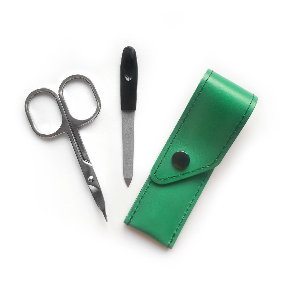 Kožené pouzdro s drukem − zelené 3,3 x 11 cm