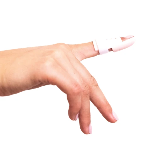 Rigidní plastová fixace článku prstu se snadnou aplikací a nízkou hmotností se zapínáním pomocí suchého zipu.