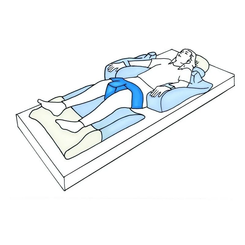 Abdukční klín je vhodný nejen pro polohování na lůžku a v sedě ve vozíku, ale je také ideální doplňkem po výměně kyčelního kloubu (TEP) pro pohodlné zabránění addukce (neboli odtažení) a vnitřní rotace operované dolní končetiny.