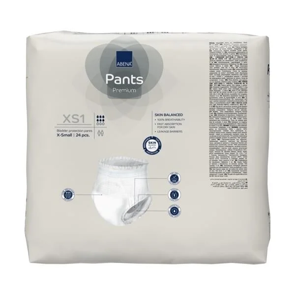 Abena Pants Premium jsou jednorázové navlékací inkontinenční kalhotky, které lze nosit jako běžné spodní prádlo. Jsou skvělým pomocníkem pro pacienty se střední inkontinencí, kteří chtějí žít aktivní život. Kalhotky jsou vyrobené z prodyšného a velmi měkkého materiálu, který zajistí optimální pohodlí i při celodenním nošení. Bederní pás s lycrovými vlákny činí kalhotky vysoce elastické a přilnavé. Savé jádro s technologií Top-Dry udržuje exponovanou oblast v pohodní a suchu, a tím chrání pokožku před podrážděním. Kombinace bariér (podélných a příčných) a gumiček nabízí 360° ochranu proti protečení. Odour control systém minimalizuje nepříjemné pachy. Indikátor vlhkosti se stupnicí vám pomůže určit, kdy je správný čas na výměnu pomůcky.
