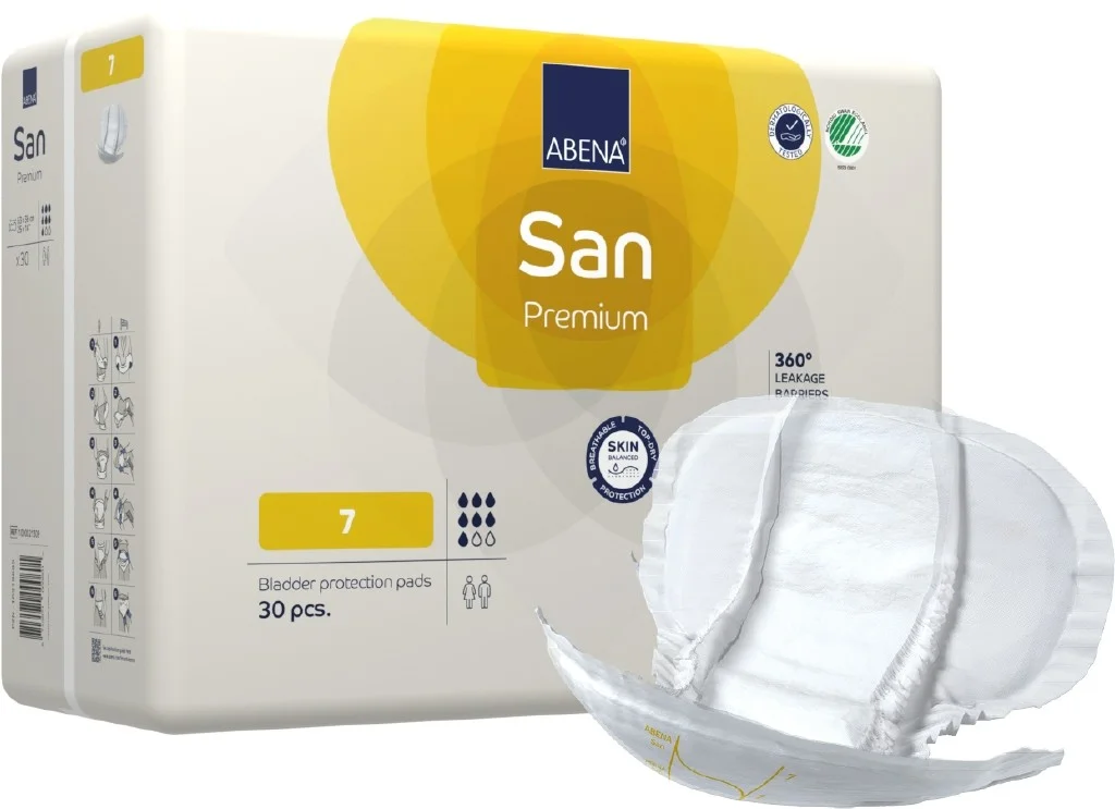 Absorpční pleny Abena San Premium představují řadu anatomicky tvarovaných inkontinenčních plen, které jsou vhodné jak pro ženy, tak pro muže. Používají se u středního až těžkého typu inkontinence, zejména u mobilních pacientů.