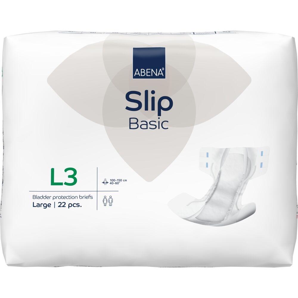 Abena Slip Basic je řada zalepovacích plenkových kalhotek vhodná při střední až těžké inkontinenci. Výrobky jsou vybaveny systémem Top-Dry, který zajišťuje rychlou absorpci a tím i pocit sucha a pohodlí. Anatomické tvarování a pružné gumičky v oblasti třísel zajišťují veštší pohodlí. Všechny výrobky jsou opatřeny bariérami proti úniku a vestavěnou křížovou bariérou pro větší ochranu proti úniku. Systém proti zápachu minimalizuje nepříjemné pachy. Kombinované lepící pásky zajišťují optimální přizpůsobení a snadné polohování.