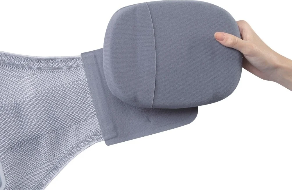 Nastavitelná břišní vložka ve spojení s dotahujícími popruhy tlačí na vnitřní oblast břicha a tím umožňuje narovnání postavy uživatele.