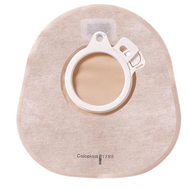 - Stomický sáček je pevně a bezpečně spojen s podložkou pomocí mechanickéhoi upínacího systému. Slyšitelné cvaknutí potvrzuje, že stomický sáček byl bezpečně připevněn k podložce.