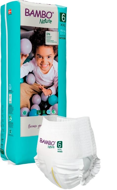 Plenkové kalhotky Bambo Nature Pants 6 XXL (15+ kg / 38ks výhodné balení). jsou měkké, pohodlné a udržují i nejcitlivější pokožku stále v suchu a to i přes noc. Perfektně sedí a neomezují pohyb dítěte.