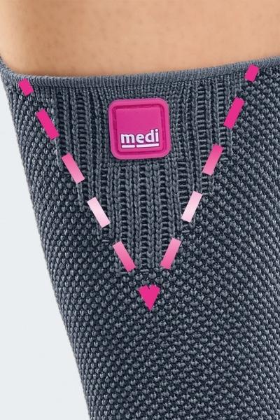 - rozšířená komfortní zóna v oblasti nártu díky větší příčné a podélné roztažnosti pleteniny pro pohodlnější nošení (zejména u pacientů s vysokým nártem)