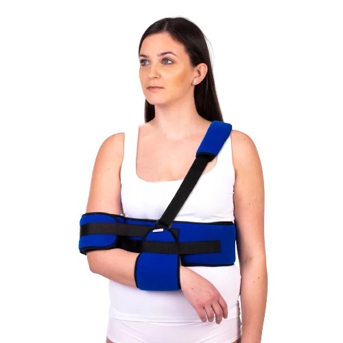 Závěsná fixace ramene je vyrobena z příjemného textilního materiálu. Je vysoce prodyšná se snadnou aplikací. Má nastavitelný ramenní popruh.