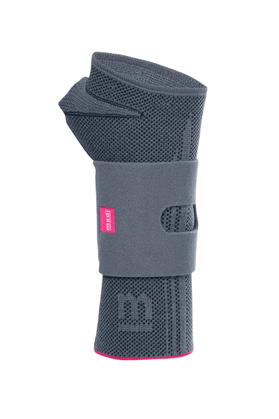 - individuálně nastavitelný pásek zvýrazňuje – v kombinaci s účinkem kompresivní pleteniny a volární dlahy – uvolnění napětí v zápěstí