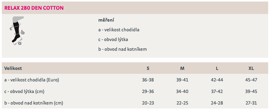 Pohodlné podpůrné podkolenky RELAX 280 DEN COTTON s žebrováním a vysokým obsahem bavlny (52 %) pro každodenní používání. Jsou vhodné např. při dlouhodobém sezení, stání a cestování. Bavlněný materiál je velmi hebký a příjemný na omak a zaručuje bezkonkurenční pohodlí při nošení. Jemné žebrování podkolenek připomíná běžnou ponožku. V bílém provedení jsou ideální pro zdravotnický personál – pro ženy i pro muže.