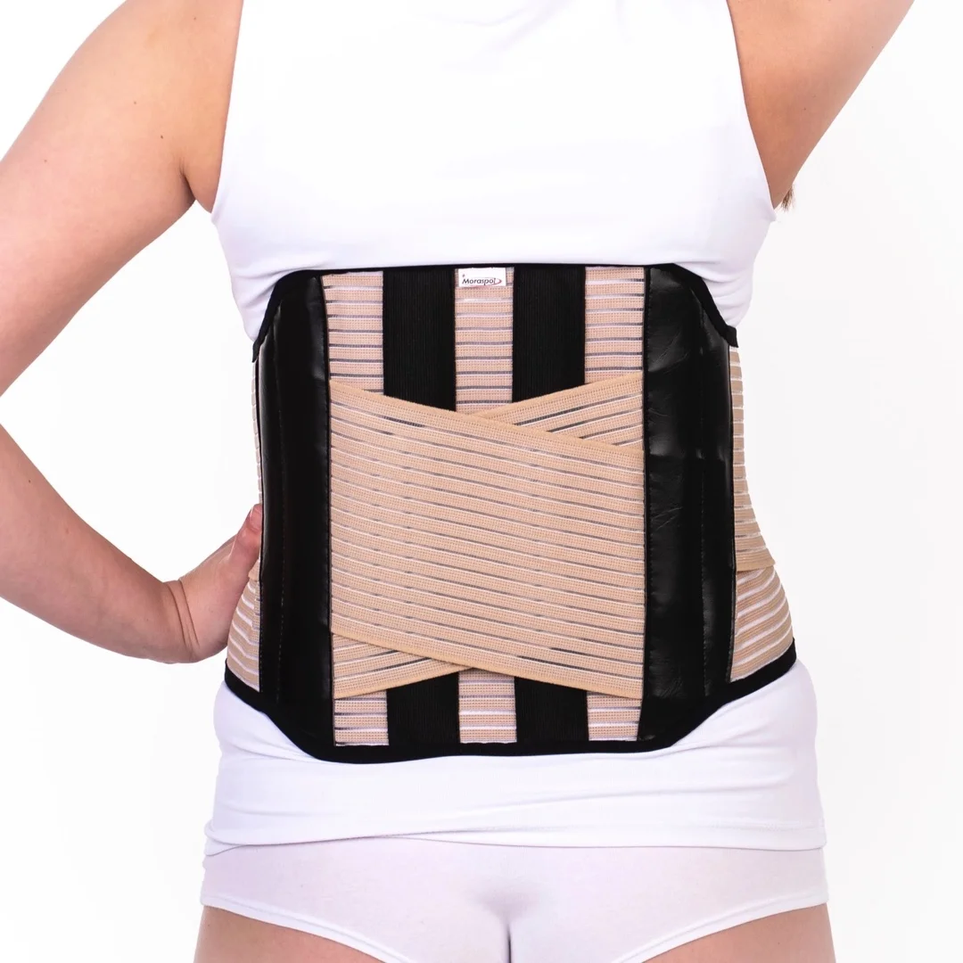 Bederní pás z prodyšného, elastického materiálu, který má čtyři plastové výztuhy se zesílenou křížovou fixací. Uchycení zajišťuje suchý zip.