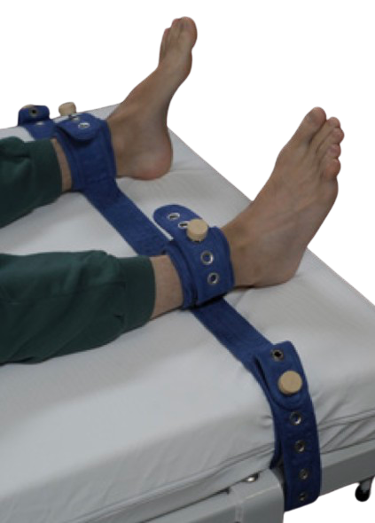 Pomocí těchto popruhů znehybněte pacientovy kotníky. Vázání nestlačuje krevní oběh a poskytuje vysoký komfort. 2 úrovně zabezpečení: systém na suchý zip a systém zámku.