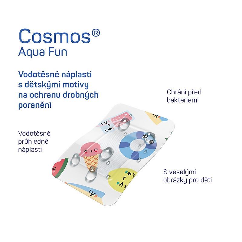 Děti a voda jsou jako magnet, jak tedy ochránit jejich drobné oděrky před namočením? Dětské vodotěsné náplasti Cosmos® Aqua Fun jsou ideální volbou právě pro aktivní děti, které rády plavou, potápějí se nebo si jen hrají ve vodě. Tyto speciální náplasti chrání poranění vašeho dítěte před vodou a vlhkostí, což pomáhá rychlejšímu hojení těchto drobných ranek a oděrek.