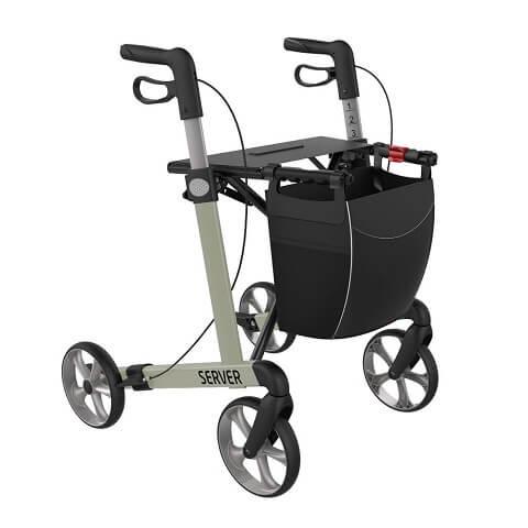 Lehké hliníkové čtyřkolové chodítko pro seniory a zdravotně postižené má elegantní rám a ergonomické rukojeti. Chodítko SERVER je vhodné do interiéru i exteriéru.