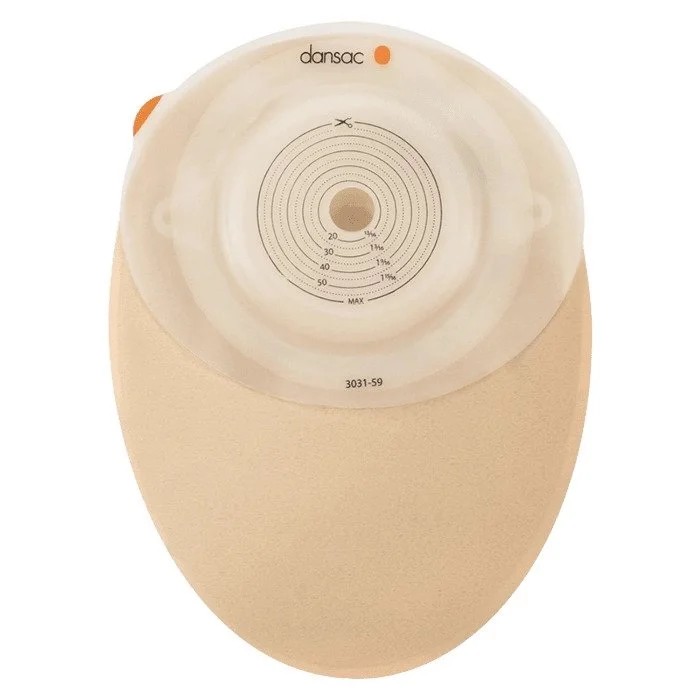 Uzavřený kolostomický sáček Dansac NovaLife TRE 1 Closed Soft Convex s EasiView™ nahlížecím okénkem a oválnou měkkou konvexní lepicí plochou TRE. Hloubka konvexity je 6 mm.