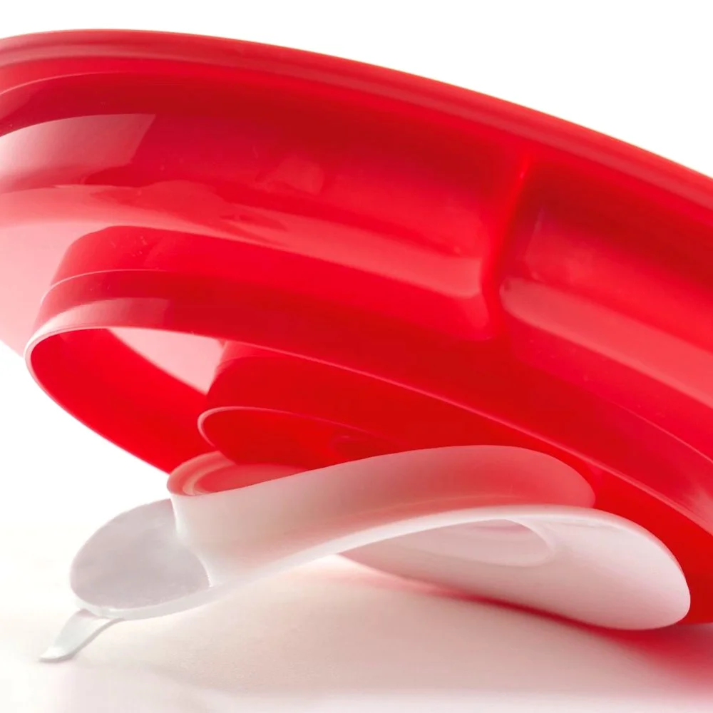 Talíř má tři samostatné oddíly pro pohodlné rozdělení a nabírání jídla.