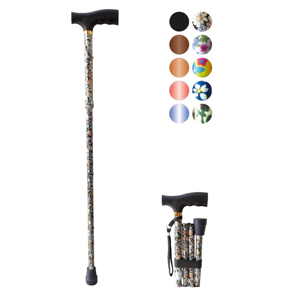 Lehká vycházková skládací duralová hůl s nastavitelnou výškou vhodná pro klienty se zhoršenou rovnováhou ke zvýšení bezpečné opory a stability. Hůl nabízíme v 10ti barevných provedení včetně 4 květinových (viz vzorník).