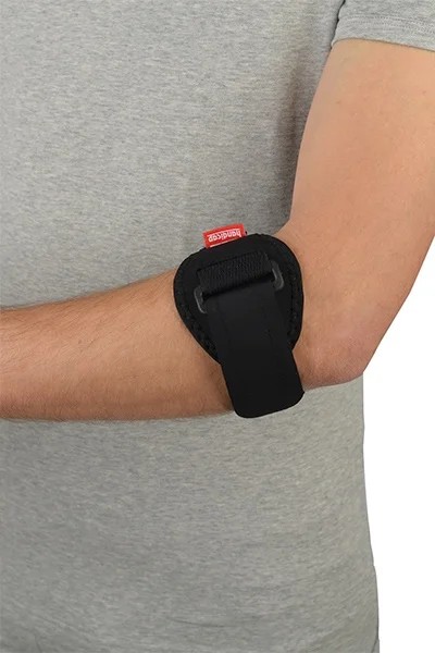 Epikondylární páska s tlakovou pelotou umožňuje jednoduché nastavení komprese na šlachy a svaly v postiženém místě. Skladba materiálu (plavkovina, PE pěna, froté) zabezpečuje komfortní nošení a neomezuje při pohybu.