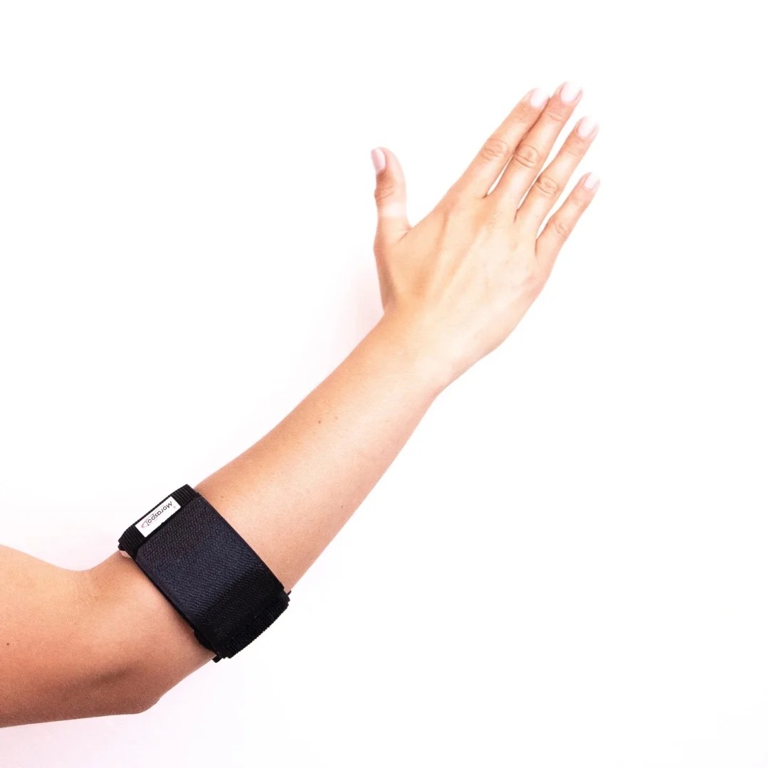 Epikondylární páska má zapínání pomocí suchého zipu. Dvě peloty zajišťují přesné zacílení tlaku. Páska je vyrobena z příjemné textilie.