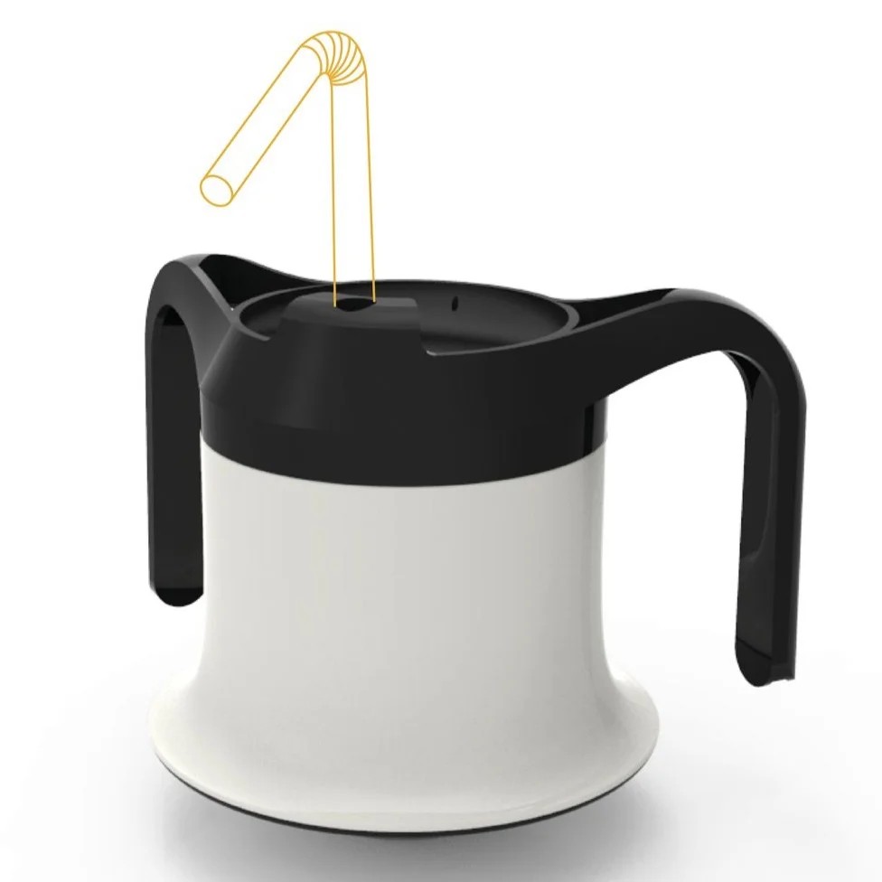 Speciálně upravené dno zabraňuje převrhnutí hrnku. Hrnek je vybaven víčkem s pítkem pro zabránění vylití a optimální průtok. Ergonomická ucha umožňují pohodlný úchop oběma rukama.