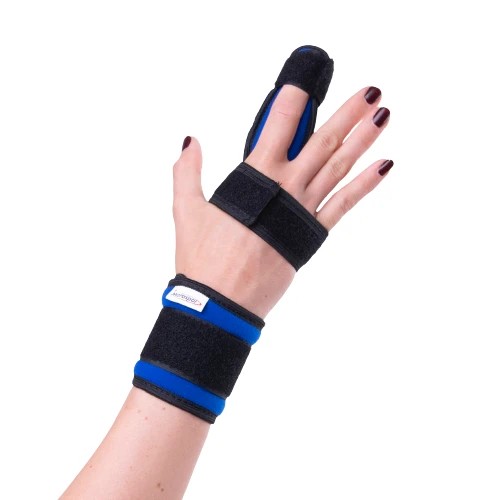 Univerzální fixace prstů horní končetiny s tvarovatelnou duralovou dlahou. Dle potřeby zapínání pomocí suchých zipů v oblasti prstů, dlaně a zápěstí. Vyrobena pro jeden nebo dva prsty.