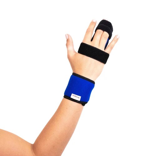 Univerzální fixace prstů horní končetiny s tvarovatelnou duralovou dlahou. Dle potřeby zapínání pomocí suchých zipů v oblasti prstů, dlaně a zápěstí. Vyrobena pro jeden nebo dva prsty.