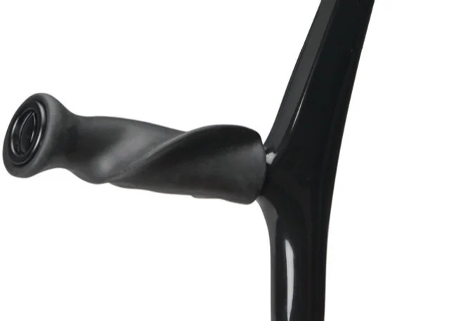 Francouzská berle s vyměkčeným anatomickým držadlem a plastovou uzavřenou opěrkou předloktí.