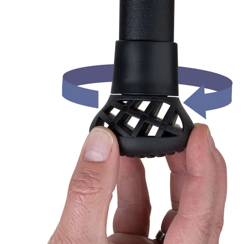 Gumový protiskluzový nástavec je otočný o 180° a umožňuje tak nastavit dva stupně tvrdosti. Asymetrický tvar nástavce zabezpečuje snadné odvalování berle a jemné tlumení nárazů během chůze .