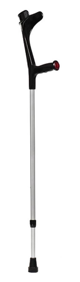 Výškově nastavitelná francouzská berle v černé barvě.