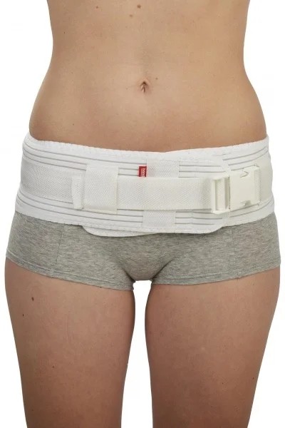 Pánevní pás je vyrobený z elastické pruženky, zpevněný zapínacím popruhem, který je v zádové části rozšířený. Umožňuje tak plynulé nastavení tahu a komfortní nošení. Snadná aplikace, neomezuje při pohybu.