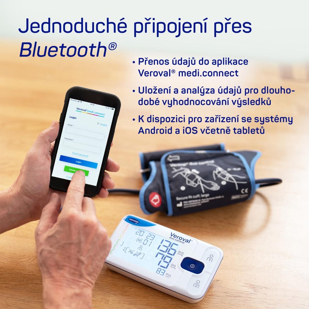 - Připojení přes Bluetooth k aplikaci Veroval medi.connect