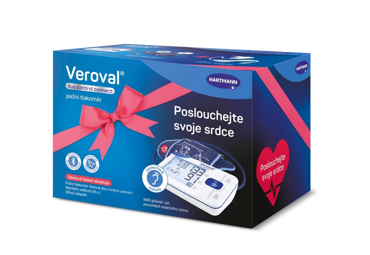 Pažní tlakoměr HARTMANN Veroval duo control connect nabízí spolehlivý a rychlý způsob měření krevního tlaku v pohodlí domova. Patentovaná metoda měření Duo Sensor využívá oscilometrickou a poslechovou metodu ke zjišťování hodnoty krevního tlaku. Kombinace těchto metod umožňuje dosáhnout přesných výsledků, a to i při srdeční arytmii. Veroval duo control connect je obohacen o třífazové měření tzv. expertní režim. Samozřejmostí je kvalitní zpracování přístroje, na který výrobce poskytuje nadstandardní, 5letou záruku. K měření slouží pažní manžeta ve velikosti M nebo L s nastavitelným obvodem. Výsledky se zobrazí na přehledném displeji s podsvícením. Veroval duo control connect lze připojit přes Bluetooth k mobilnímu zařízení a zaznamenávat své výsledky do mobilní aplikace Veroval medi.connect.