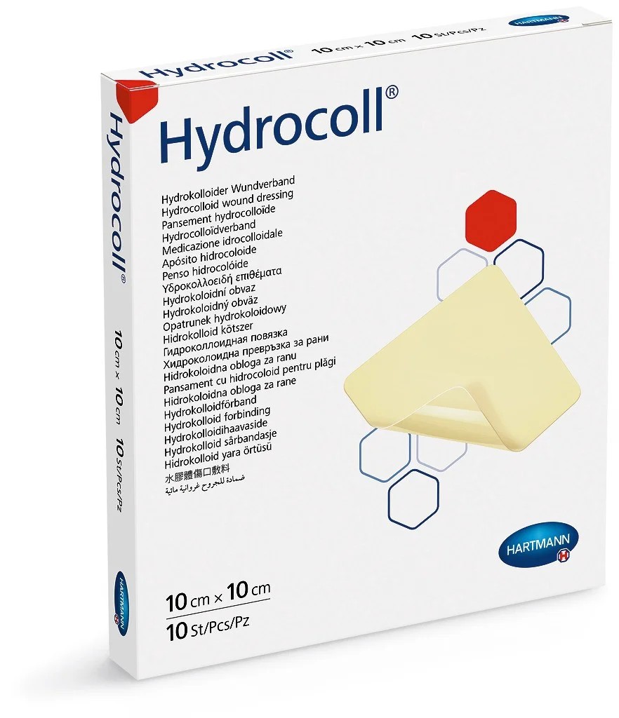 Hydrocoll je vysoce flexibilní samolepicí krytí. Má savé jádro, které rychle absorbuje exsudát a proměňuje jej v gel, který udržuje ránu dostatečně vlhkou.Vytváří tak ideální prostředí pro vznik granulační tkáně.