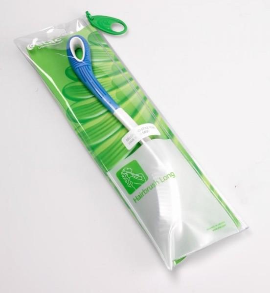 Kartáč na vlasy s prodlouženou ergonomickou rukojetí.