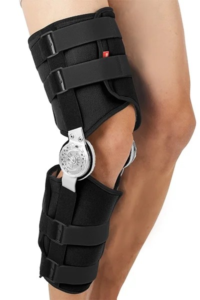 Kolenní ortéza s jednoosým kloubem a možností vymezení rozsahu pohybu po 10°. Vyrobeno ze 100% bavlny (styk s kůží). Způsobí imobilizaci kolene s možnosti vymezení rozsahu pohybu. Součástí je jednoosý duralový kloub. Má individuálně nastavitelný obvod.