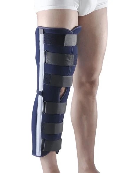 Kolenní ortéza s pevnou podporou v extenzi se 4 nastavitelnými výztuhami.