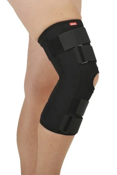 Návleková kolenní ortéza s otvorem pro čéšku. Po stranách jsou umístěny dva dvouosé klouby. Čéška je dodatečně stabilizovaná všitým neoprenovým kroužkem. Stahování zajišťují 4 pásky.